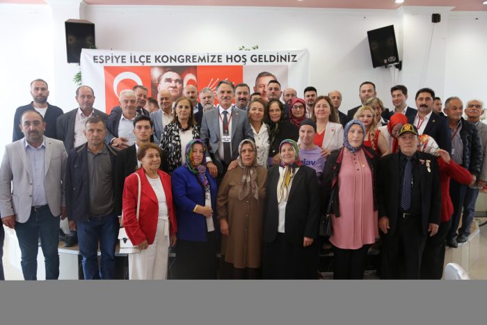 Cumhuriyet Halk Partisi (CHP) Espiye İlçe Olağan Kongresi, parti üyeleri ve delegelerin katılımıyla Baladın Düğün Salonu’nda gerçekleştirildi. Saygı duruşu ve İstiklal Marşı ile başlayan kongrede tek listeyle gidilen seçimlerde delegenin oyu ile mevcut ilçe Başkanı İbrahim Akgün güven tazeledi.Divan başkanlığını Yılmaz Kırmanoğlu,Nilay Patan,Sultan Karaman yaptı.