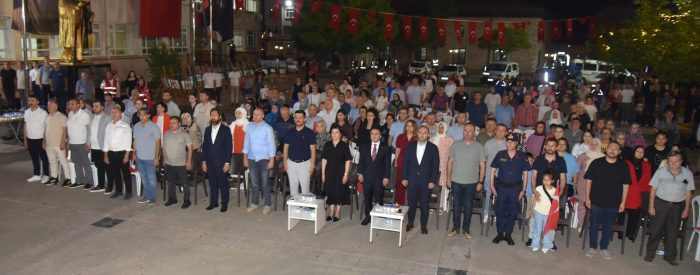 Espiye Hükümet Konağı Meydanında 15 Temmuz Demokrasi ve Milli Birlik Günü Anma Programı düzenlendi.Program Hükümet Konağı meydanında şehitlerimiz için saygı duruşu ve İstiklâl Marşı’nın okunmasıyla başladı. İlçemizde düzenlenen “15 Temmuz Demokrasi ve Millî Birlik Günü” programına; İlçe Kaymakamımız Ahmet Kavanoz, Belediye Başkan Vekili Figen Önal,Belediye Başkan Yardımcısı Cem Güven protokol üyeleri ve çok sayıda vatandaşımız katıldı.Espiye Kaymakamı Ahmet Kavanoz ,günün anlam ve önemini belirten konuşma yaptı. Program kapsamında, Şehit Murat Şahin Anadolu İmam Hatip Lisesi öğrencileri Selcan Karaman ve Belinay Yıldız günün anlamını yansıtan şiirler seslendirdi.Programın devamında, Espiye Müftülüğü din görevlilerince Kur’an-ı Kerim tilaveti ve ilahiler okundu.Cumhurbaşkanı Recep Tayyip Erdoğan’ın dev ekrandan günün anlam ve önemi yaptığı VTR Espiye meydanında toplanan protokol üyelerine ve vatandaşlara izletildi.Ardından sırasıyla sinevizyon gösterisi olarak Geceden Şafağa 15 Temmuz Belgeseli ve Şafak Vakti Film Gösterimi yapıldı. Espiye Müftüsü Osman Gülbe tarafından, 15 Temmuz şehitleri başta olmak üzere tüm vatan evlatları için dualar edildi.Espiye ve Türkiye’de ki tüm camilerden saatler 00.13’ü gösterdiği sıralarda eş zamanlı okunan Sela ile 15 Temmuz Demokrasi ve Milli Birlik Günü Anma Programı sona erdi.(Hatun Gökçe)