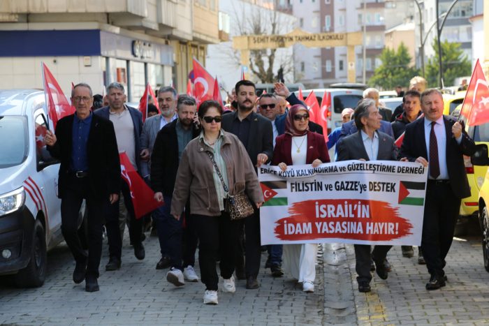 Espiye ilçesinde İsrail’in Filistin’e yönelik saldırıları ve Filistinli esirleri hedef alan “idam cezası” yasasına tepki için yürüyüş gerçekleştirildi.Sivil toplum kuruluşlarınca organize edilen etkinlikte, Çam Mahallesi’ndeki halk pazarında toplanan katılımcılar Hükumet Konağı önüne kadar yürüdü.Grup adına konuşan Ceylani Çevik;Bugün burada, insanlık vicdanının sesi olmak, zulme karşı durmak ve adalet çağrısını yükseltmek için bir araya gelmiş bulunuyoruz. Sivil toplum kuruluşları olarak, Filistin halkına ve özellikle Gazze’de yaşanan insanlık dramına dikkat çekmek amacıyla bu yürüyüşü düzenliyoruz.Son dönemde İsrail tarafından gündeme getirilen ve insan hakları açısından son derece kaygı verici olan idam yasası, evrensel hukuk ilkelerine, insan onuruna ve yaşam hakkına açık bir tehdit oluşturmaktadır. Bu tür uygulamalar, bölgede barış ve huzur umutlarını daha da zayıflatmakta, gerilimi derinleştirmektedir.Gazze’de yıllardır süren abluka, sivillerin temel yaşam haklarını kısıtlanmakta; kadınlar, çocuklar ve masum insanlar ağır bedeller ödemektedir. Buna ek olarak idam gibi geri dönüşü olmayan cezaların gündeme getirilmesi, zaten zor şartlar altında yaşayan halk için yeni bir korku ve baskı unsuru oluşturmaktadır.