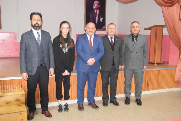 Okul salonunda düzenlenen tören ile Birinci olan Berna Nur Çelik ‘e 7 bin TL ödülünü Giresun il Müftüsü Selçuk Kılıçbay tarafından verildi.